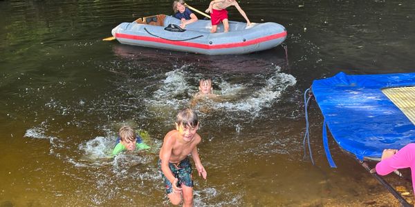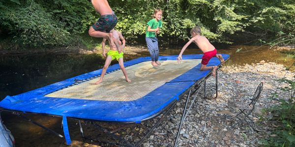 Our riverside trampoline allows guests to jump or dive directly into our natural deep water swim pool. A kids and adults favourite especially when the sauna is fired up also.
